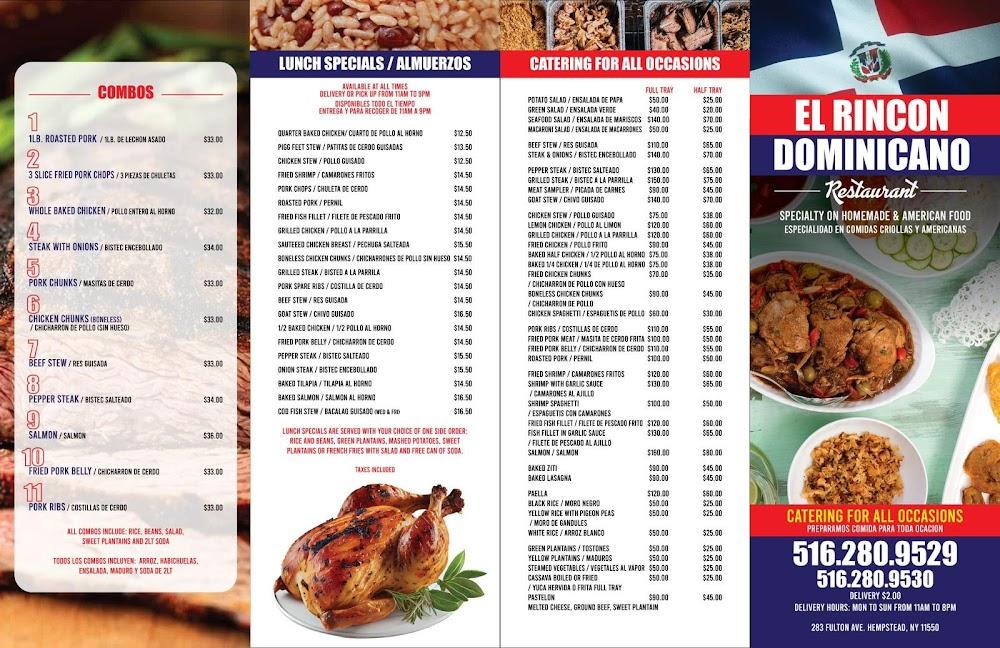 Welcome to El Rincon Dominicano, your go-to destination for authentic Dominican cuisine in Hempstead, NY. Located at 283 Fulton Ave, our vibrant restaurant offers a casual and welcoming atmosphere, perfect for solo diners, families, and friends alike. Enjoy a delightful menu featuring breakfast, lunch, and dinner options, with specialties that highlight the rich flavors of the Dominican Republic. We provide convenient delivery, takeaway services, and dine-in experiences, ensuring there's something for everyone. With accessible seating, child-friendly options, and outdoor pet-friendly areas, El Rincon Dominicano is ideal for every occasion. Come savor a taste of tradition!