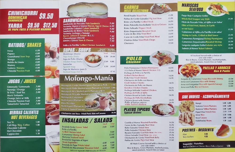 El Rincon Dominicano features a diverse menu, offering countless Dominican specialties. Guests can delve into traditional dishes like pollo guisado and carne de cerdo frito. Plates often come overflowing with vibrant flavors and plenty to share. Notable categories include lunch specials, family combos, and authentic desserts. Each section showcases various options tailored to different preferences. Seafood lovers can enjoy selections like grilled salmon or shrimp. Mofongo, a local favorite, is prepared with care and rich flavors. The menu also includes vegetarian options and delightful side orders. Overall, it satisfies cravings for genuine Dominican cuisine, promising a memorable dining experience for all.